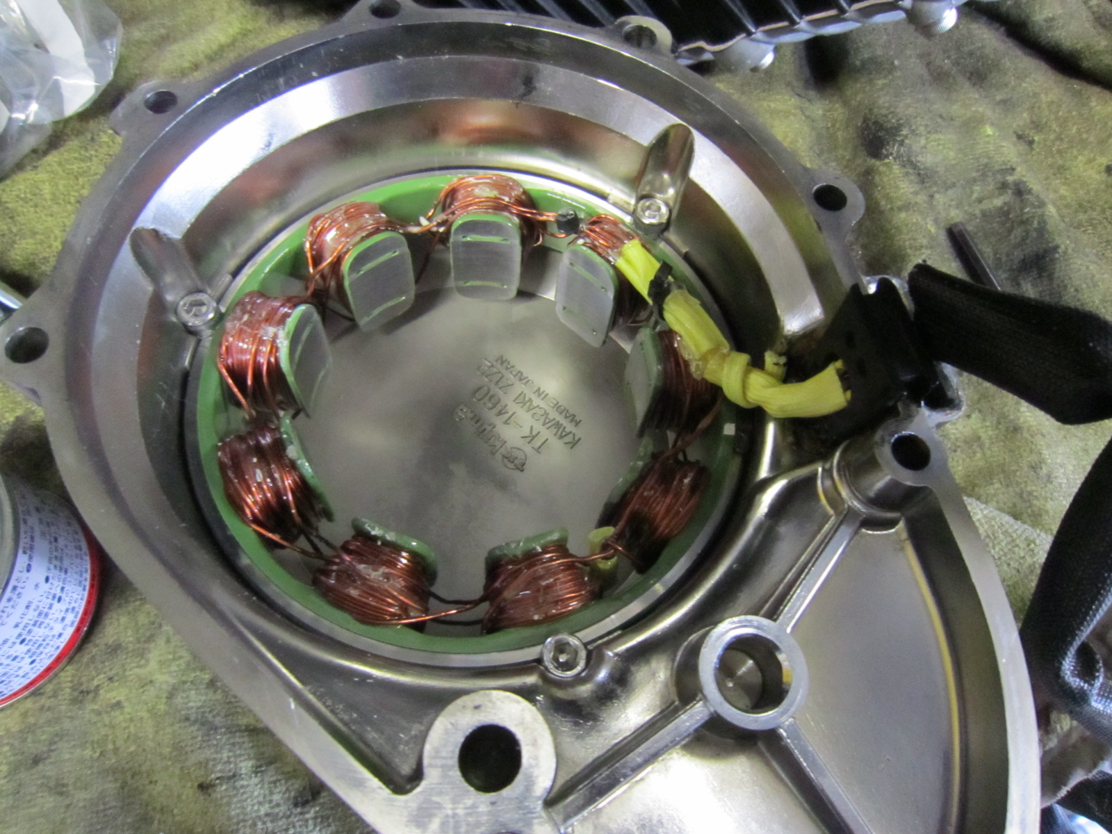 先に塗ってあったダイナモカバーに新品のダイナモを装着し取付ていきます。