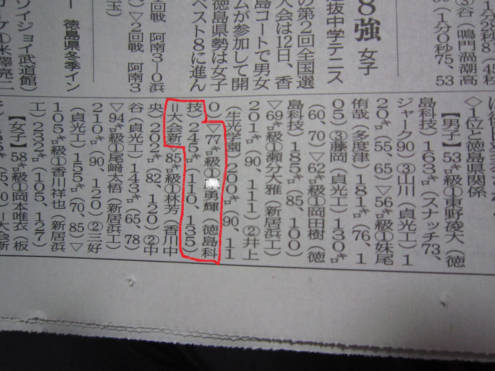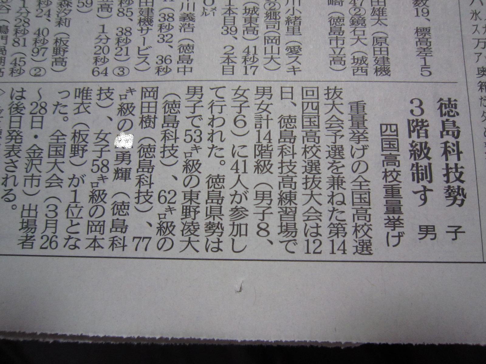 1月12日(日)今日は、少将「勇輝」ウェイトリフティングの四国大会です。