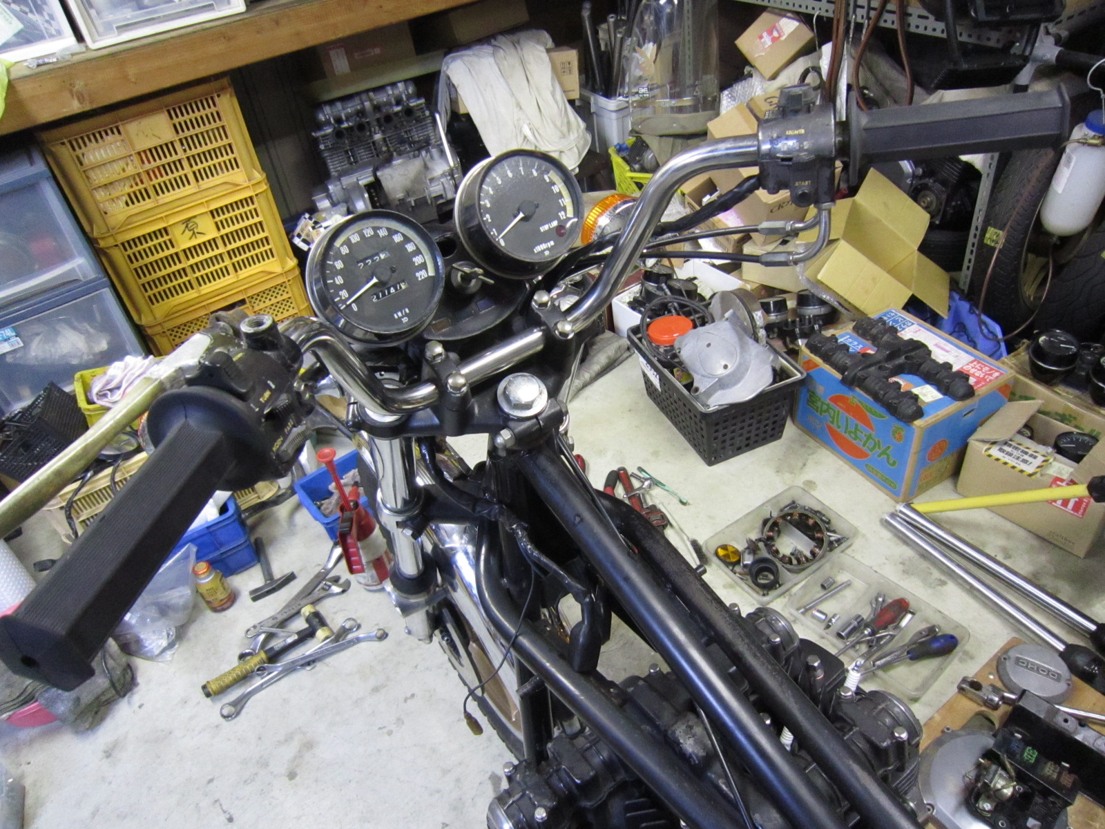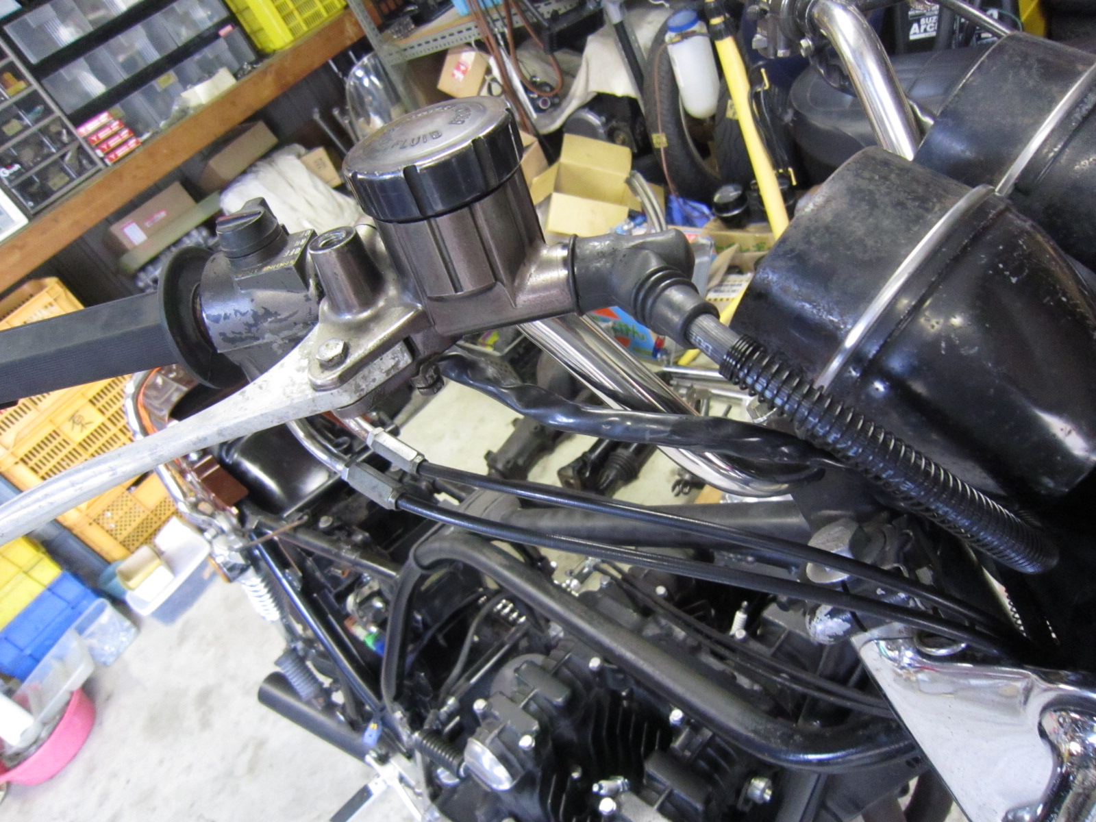 ダイナモの交換や、ハイフラの取付などしたいようだが・・・・私の腰はバキバキ状態・・・