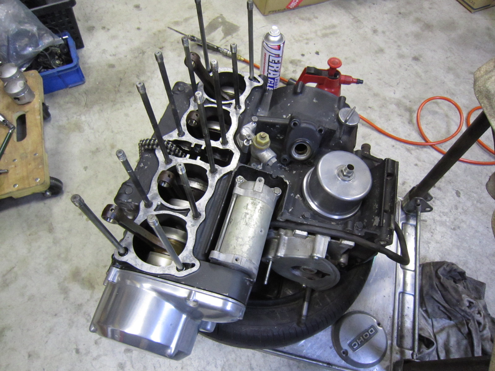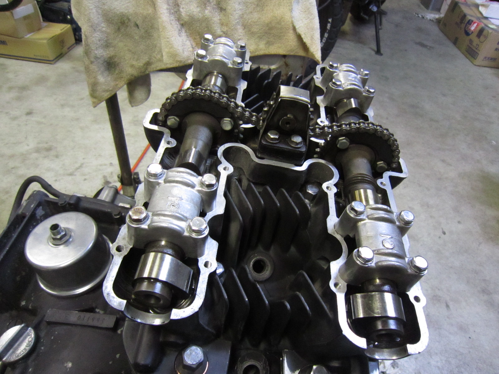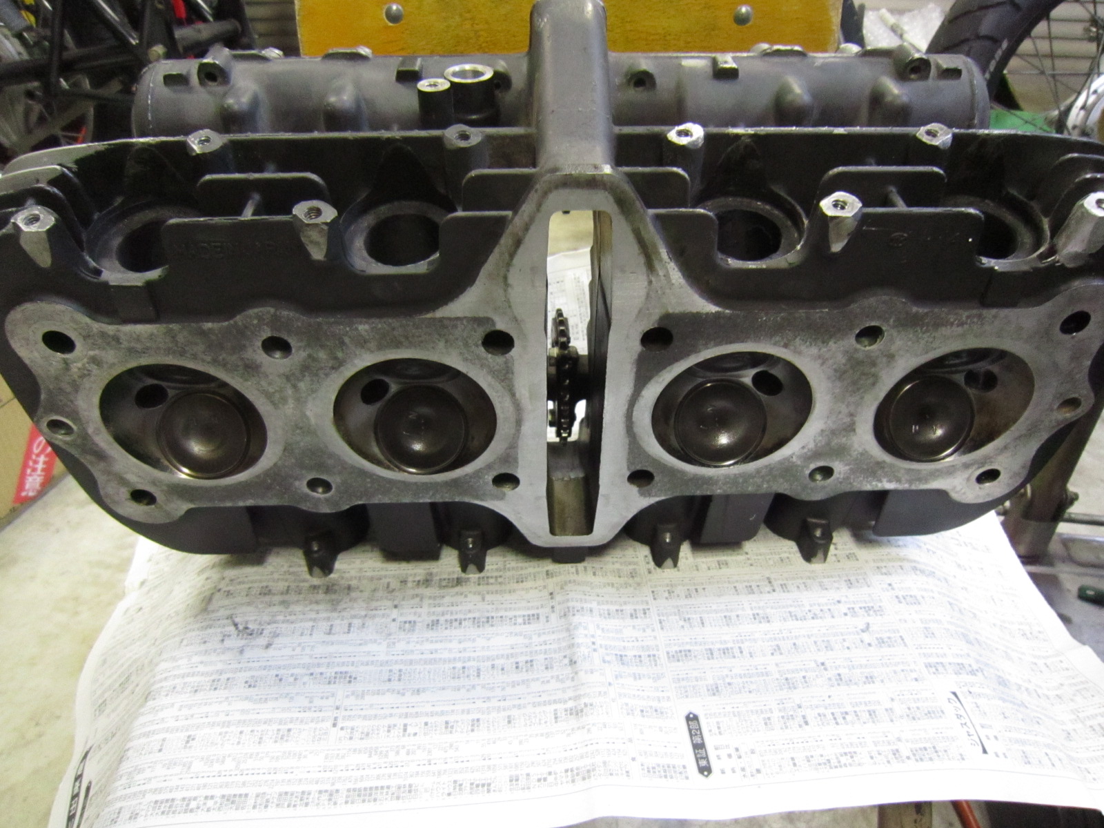 シリンダーヘッドは、バルブガイド・バルブ・シートカット・シム調整などをすべてやり替えた、フルOH状態のヘッドが完成しているのでこれを使います。