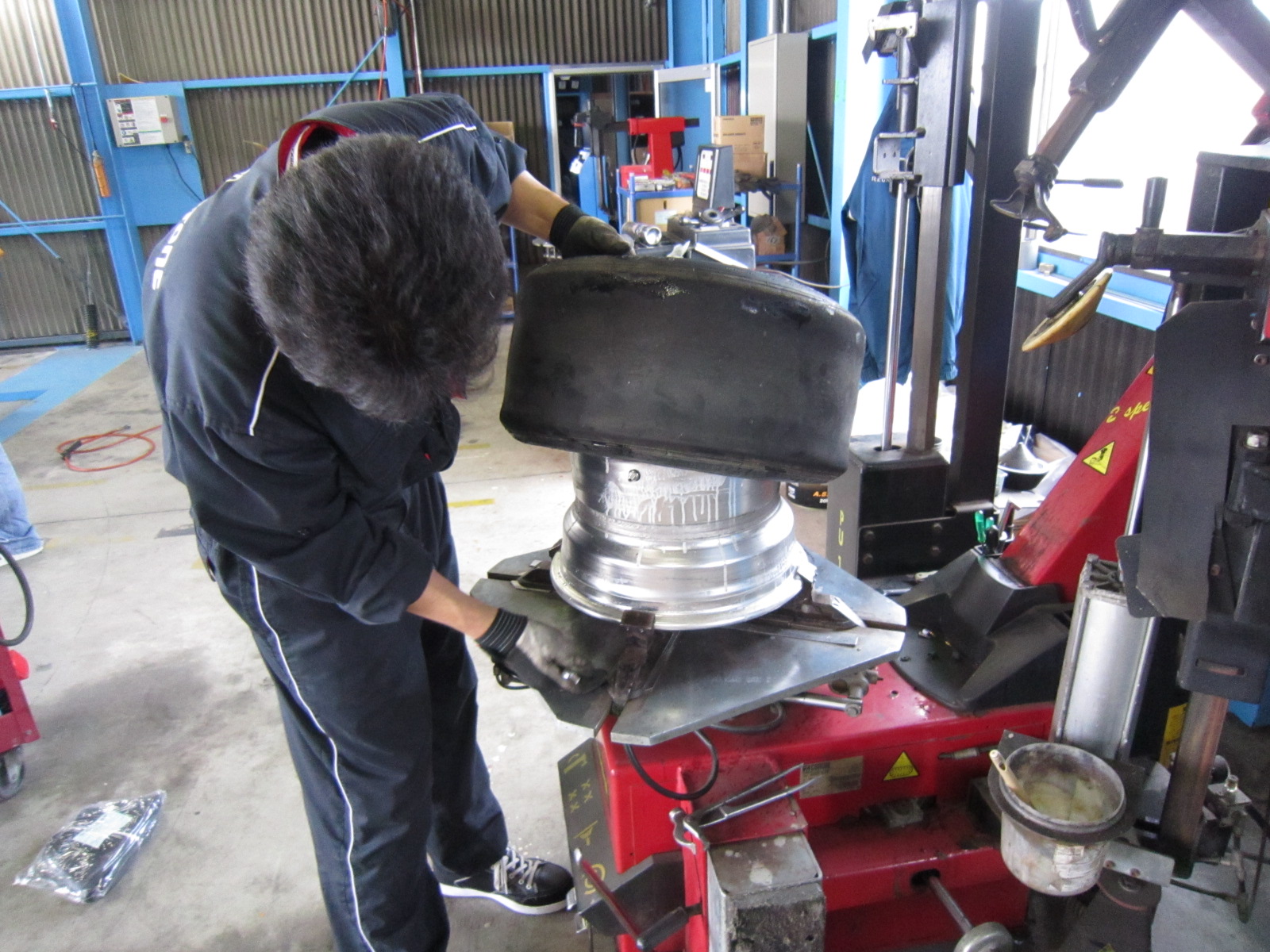 ワイドホイールにスリック・・・・ものすごくハンドルを振って走行不能状態(60km/h限界)ですので、バランス取りしてきます。
