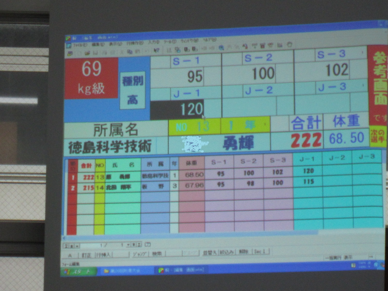 少将 ・スナッチ102キロ・ジャーク120キロ 合計222キロ