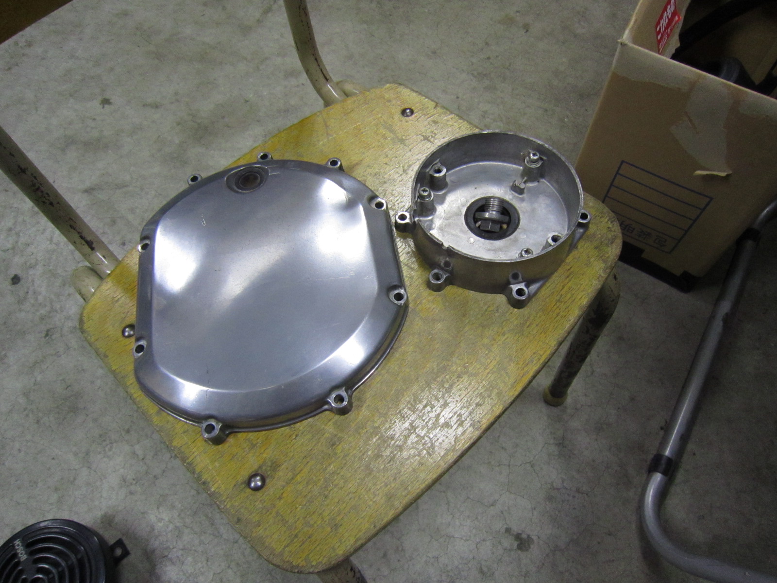 10月30日(水)ブタケツ君もフロント足回りの点検に出し、その間にエンブレムなどの手入れをしておきます。