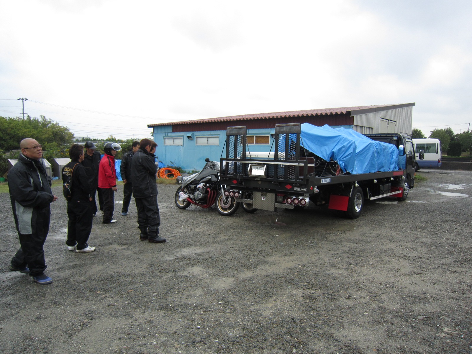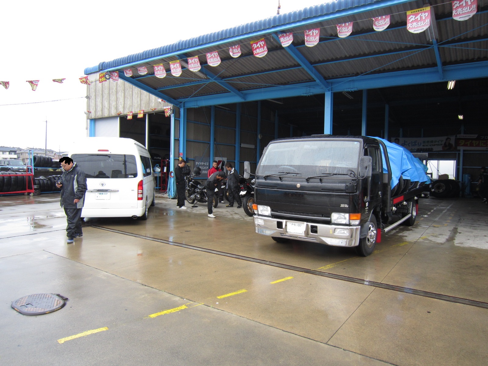 9時に平野クンの職場で荷物の積込みをして出発!!