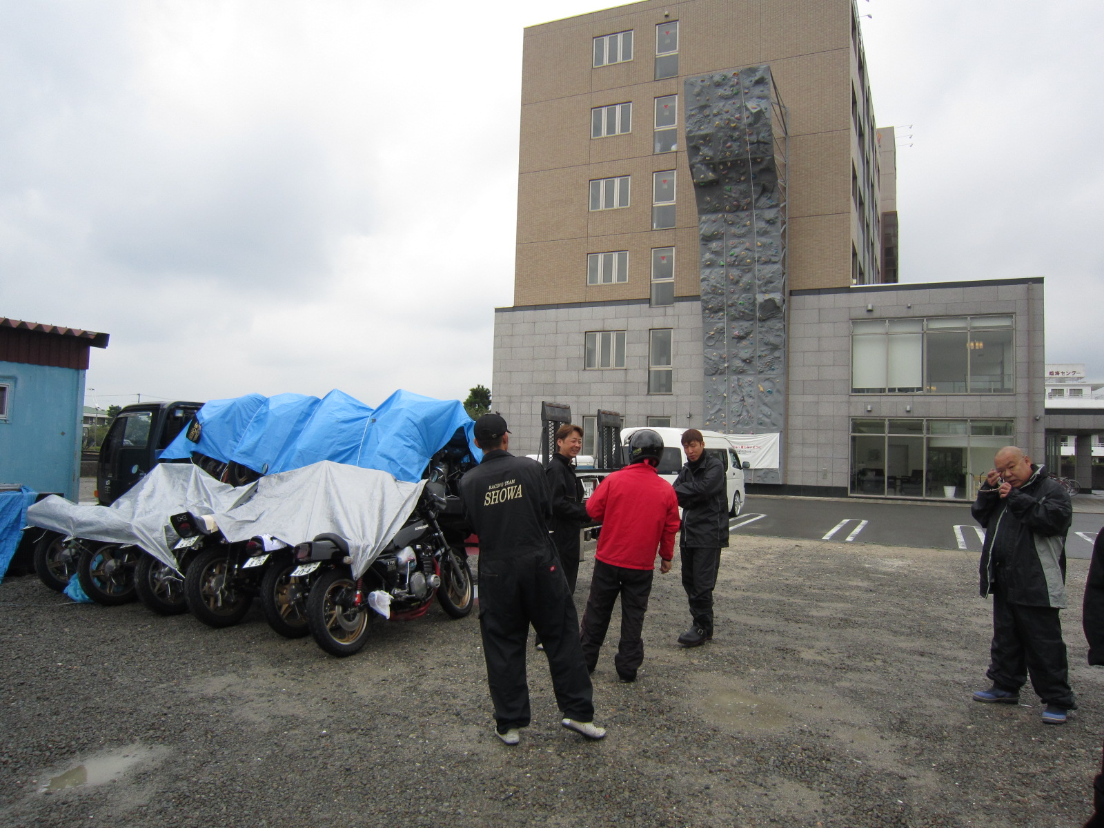 前夜祭に参加して頂ける方々がこの雨の中自走でやってきてくれました・・・・なんて良い仲間たちでしょ~!