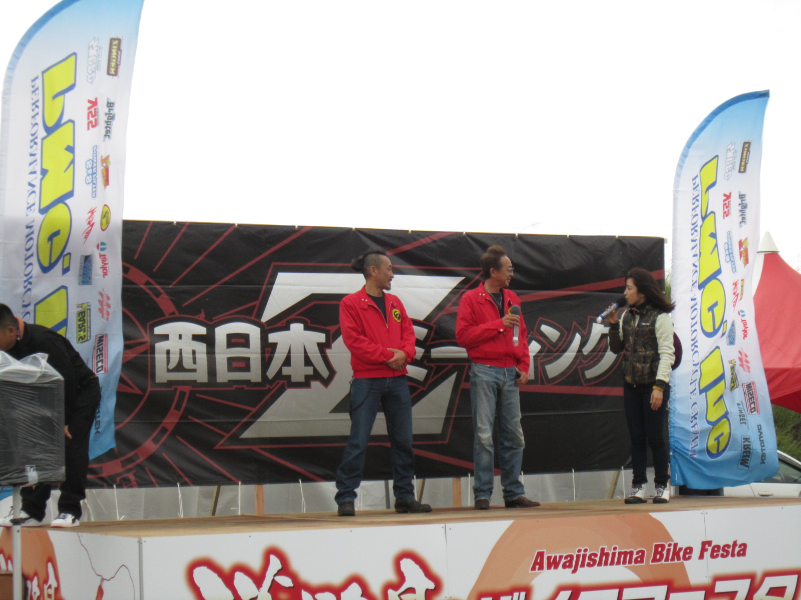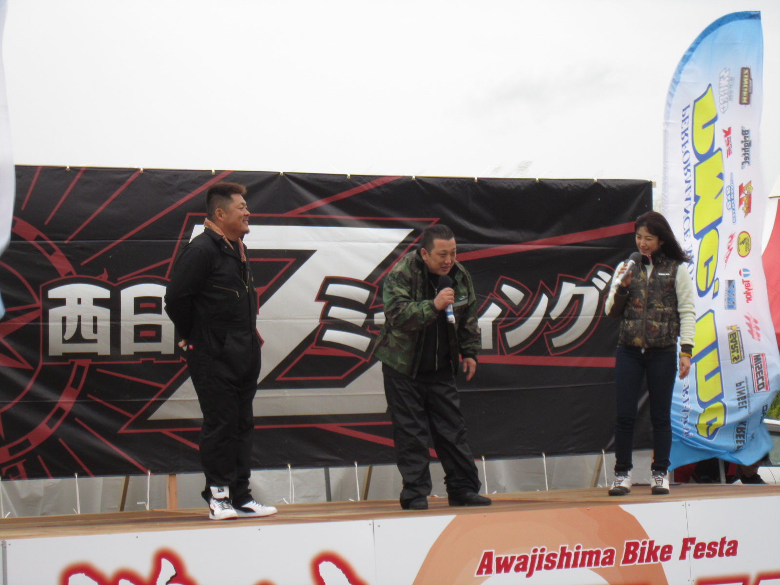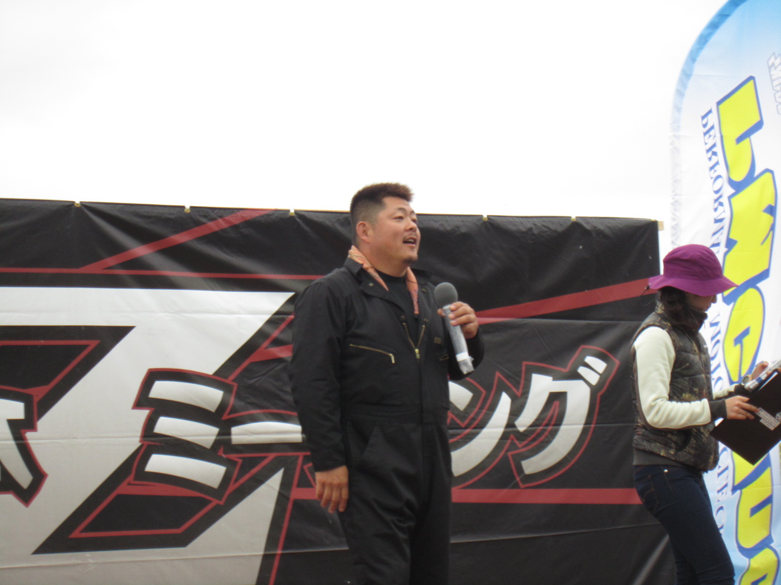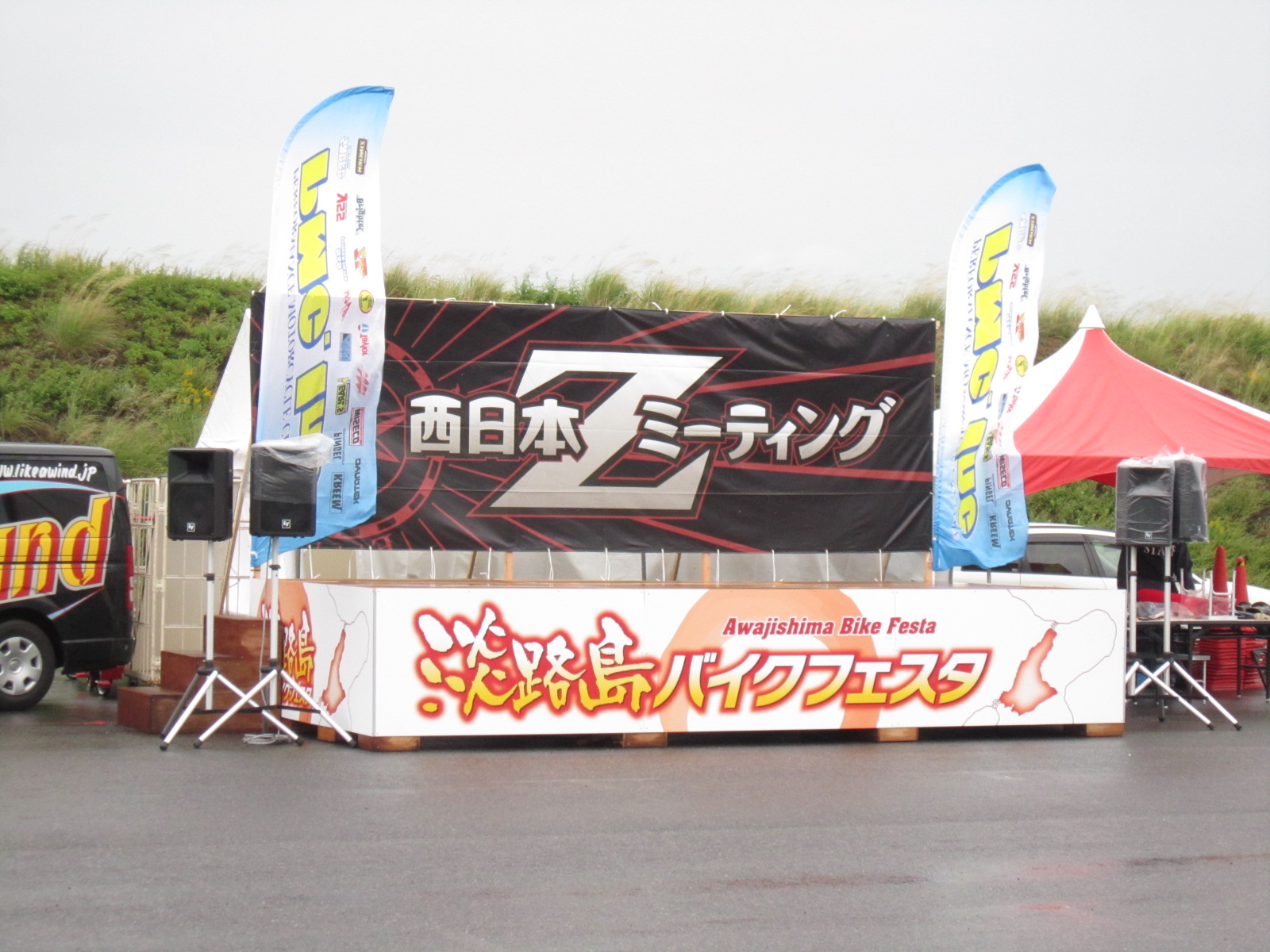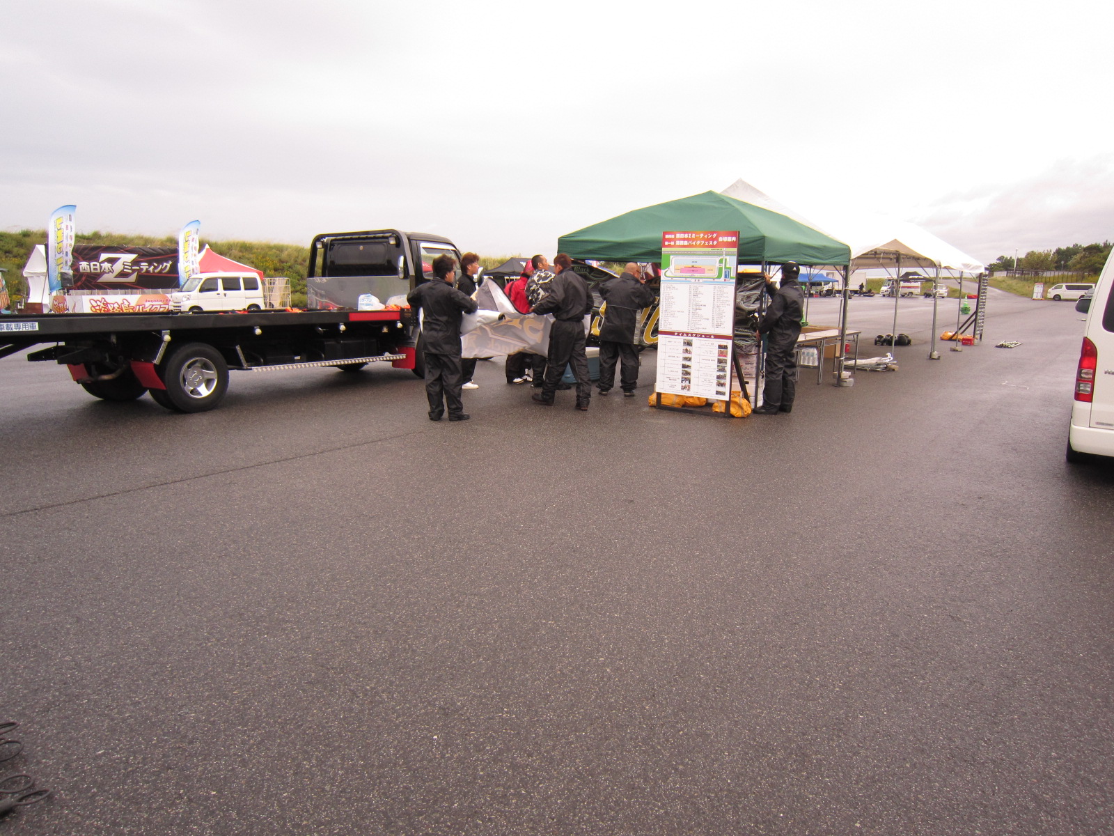 SHOWAブースも設置しますが、風が強くて・・・もぉー最悪です。