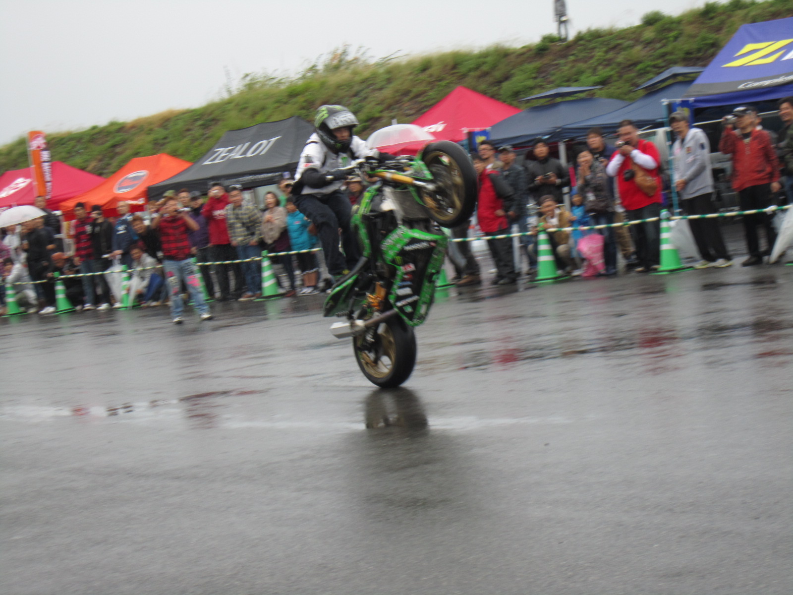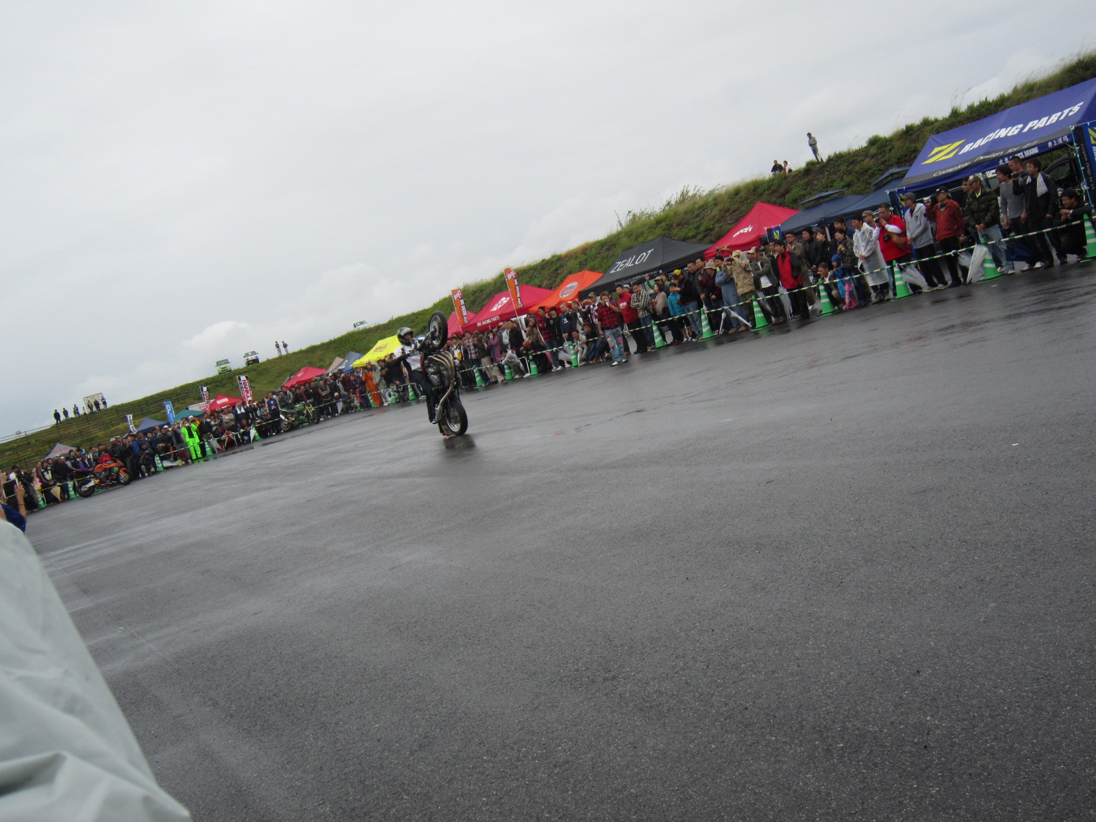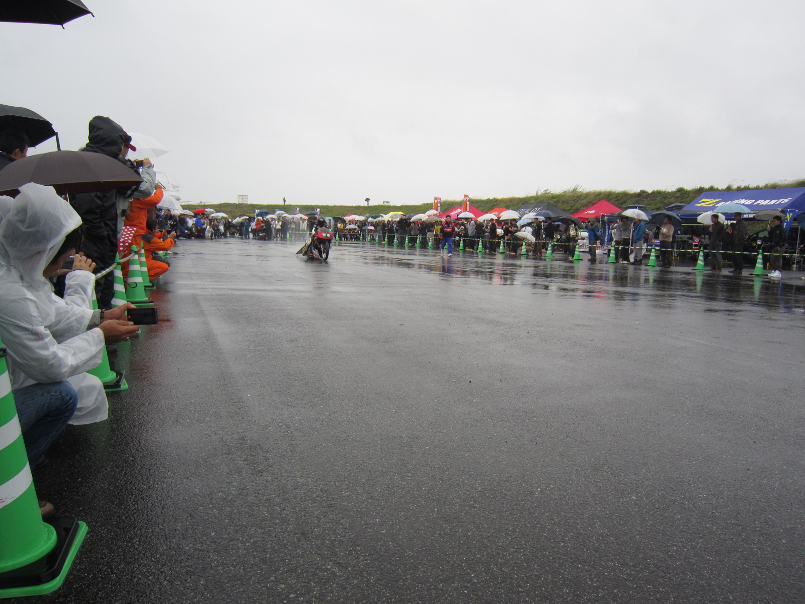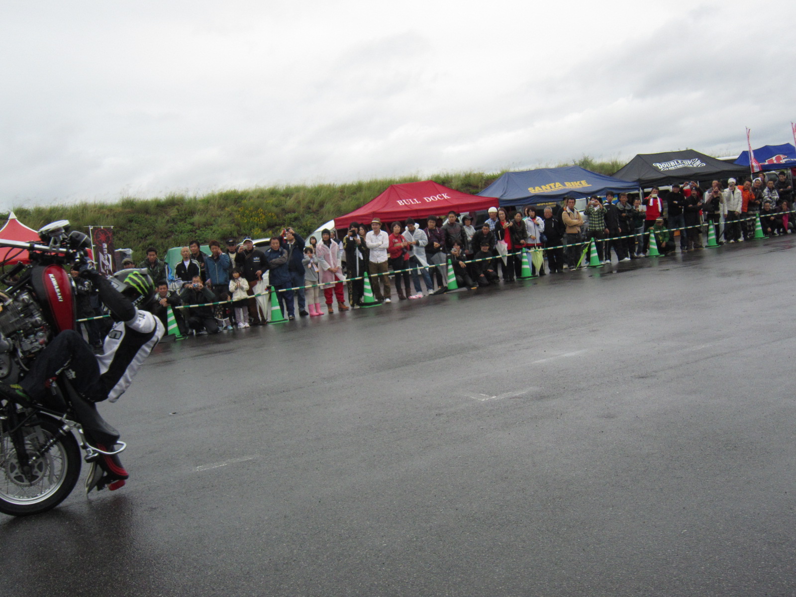 雨の中ですが、ドラックレースのデモストレーションや、エクストリームが始まりました。