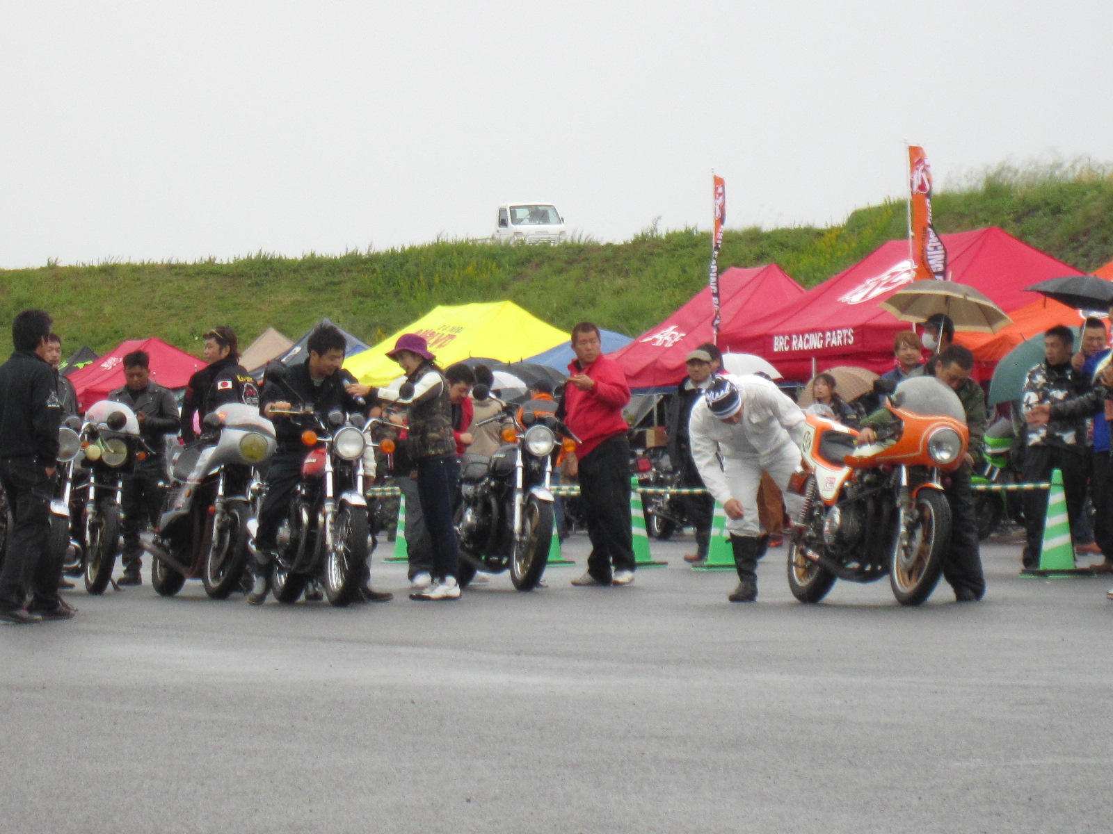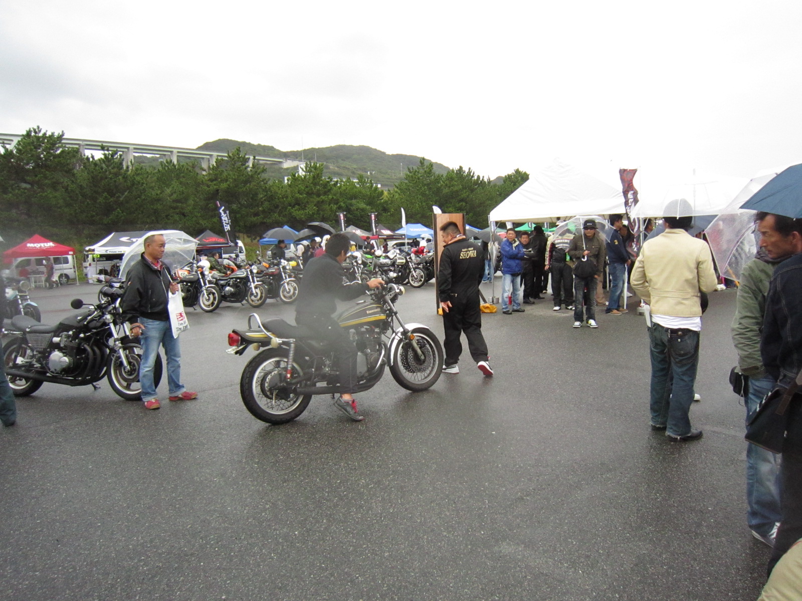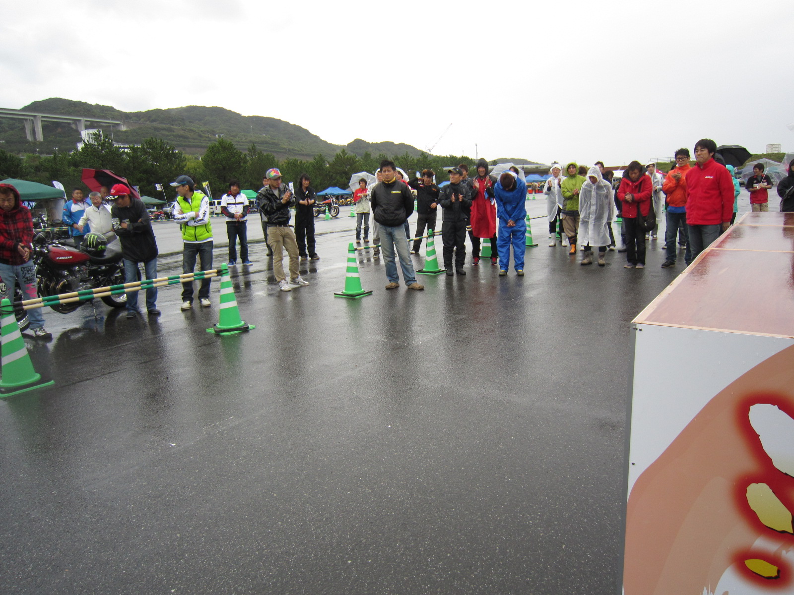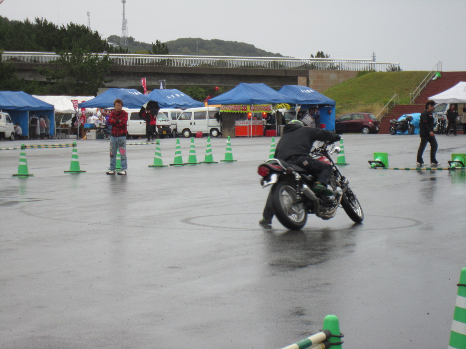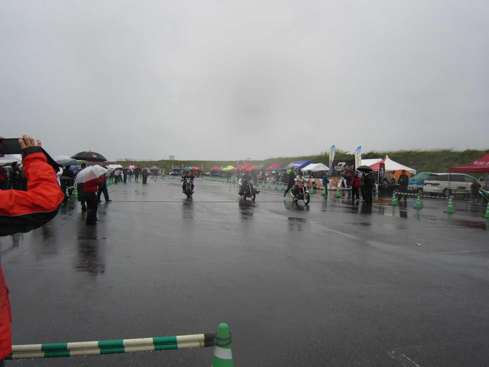 雨の中ですが、ドラックレースのデモストレーションや、エクストリームが始まりました。