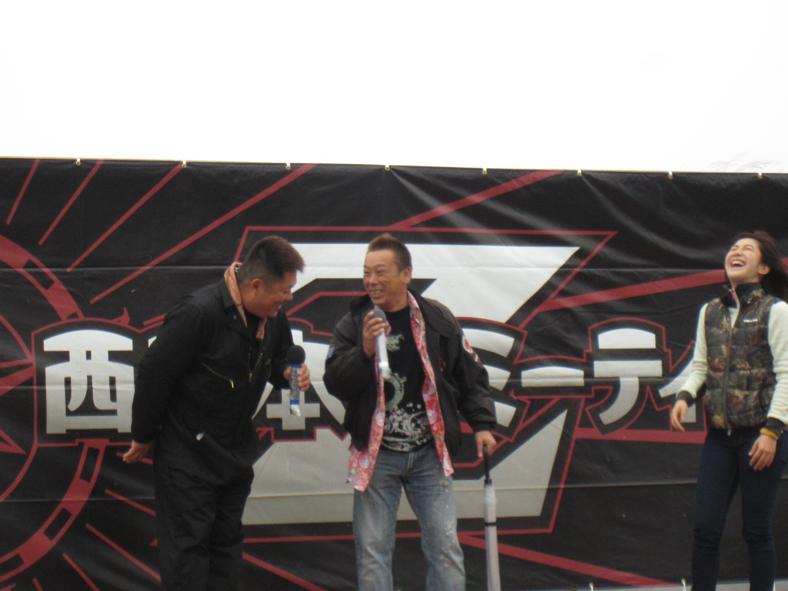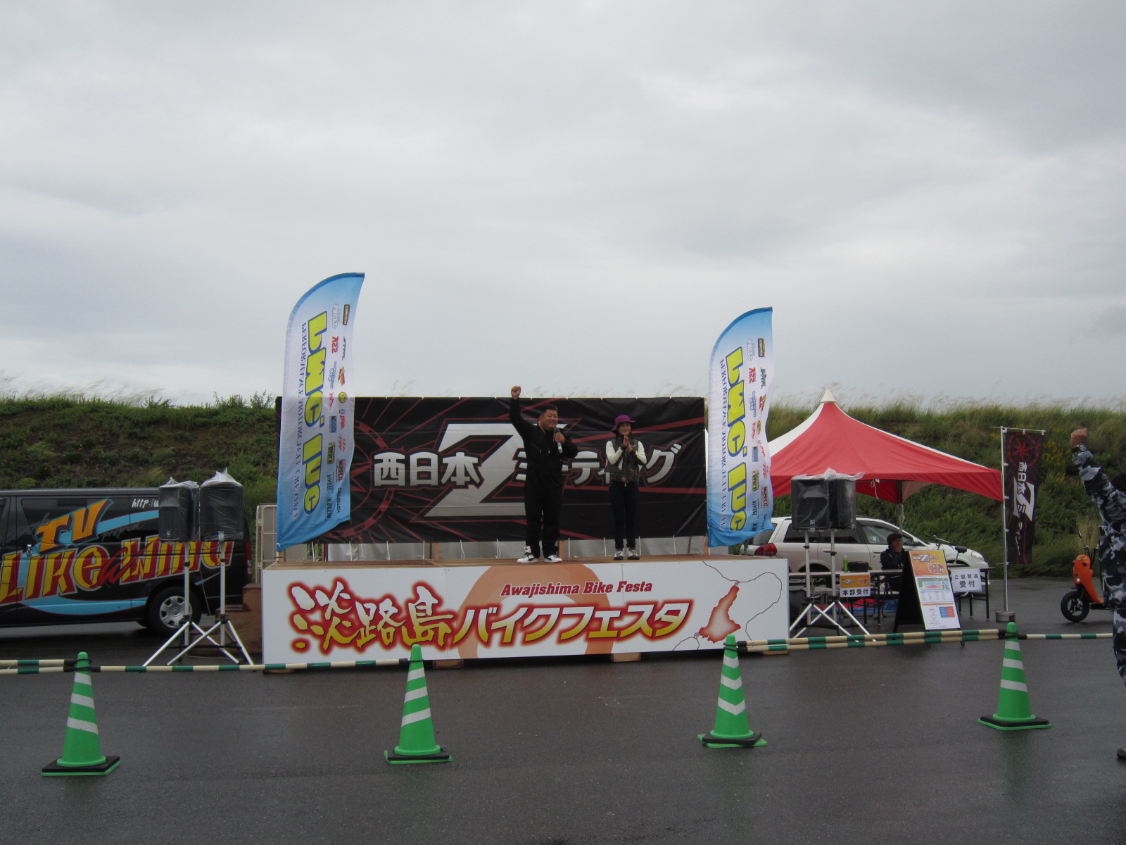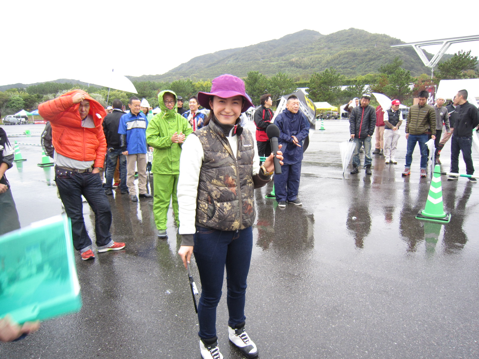 MCの多聞恵美さんです!今年もよろしくだけど・・・やっぱり雨降っちゃって・・濡れながらのMCご苦労さまです。