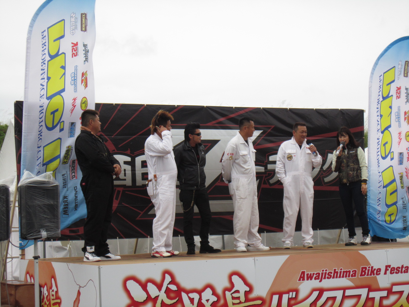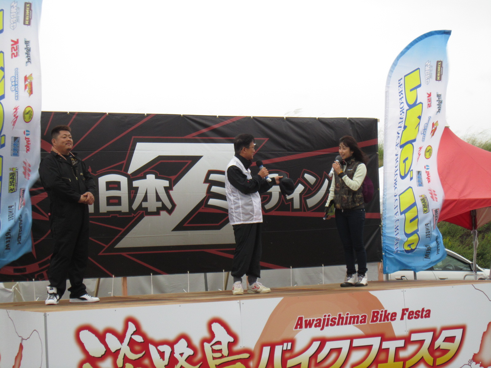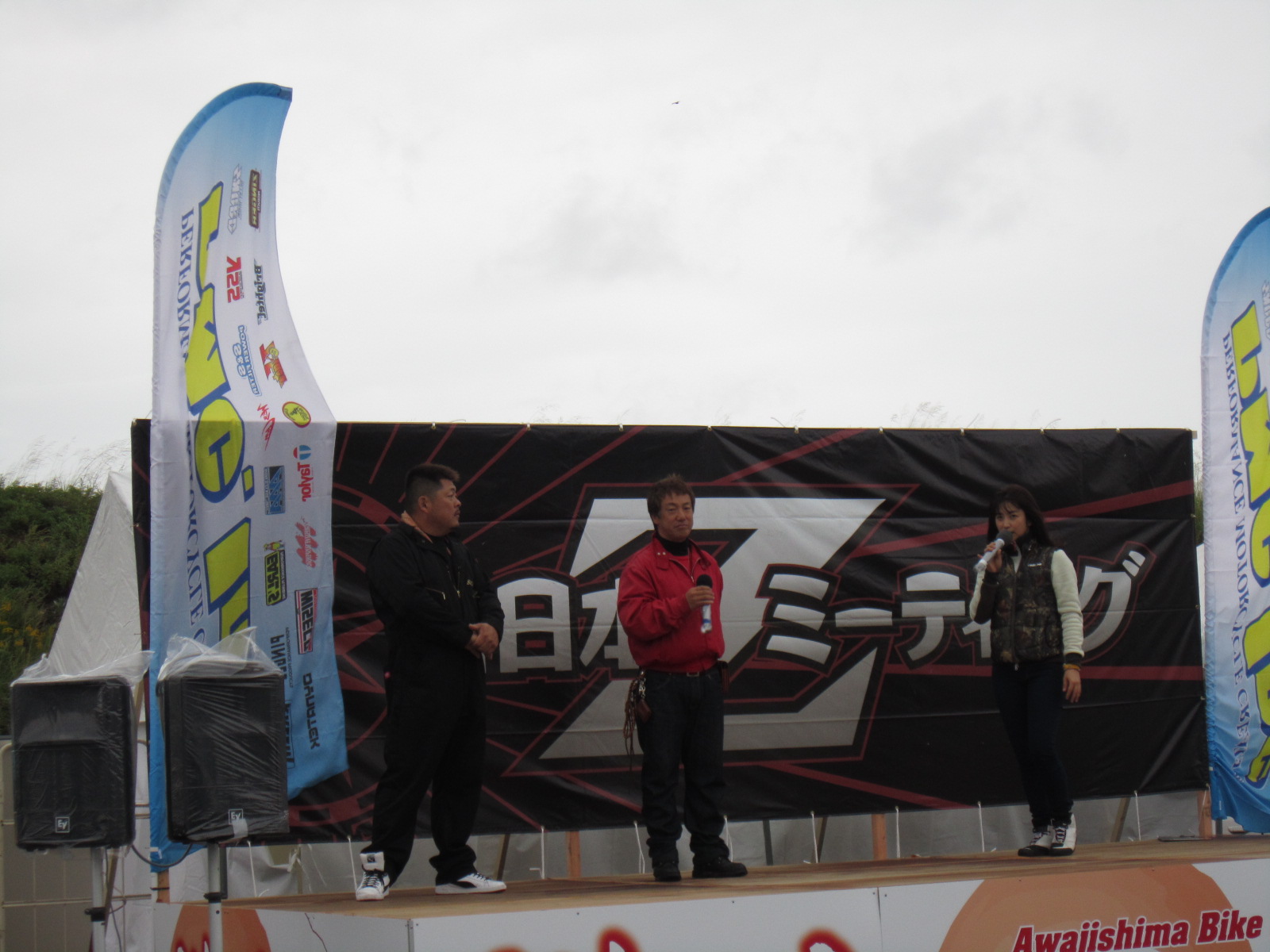 MCの多聞恵美さんです!今年もよろしくだけど・・・やっぱり雨降っちゃって・・濡れながらのMCご苦労さまです。