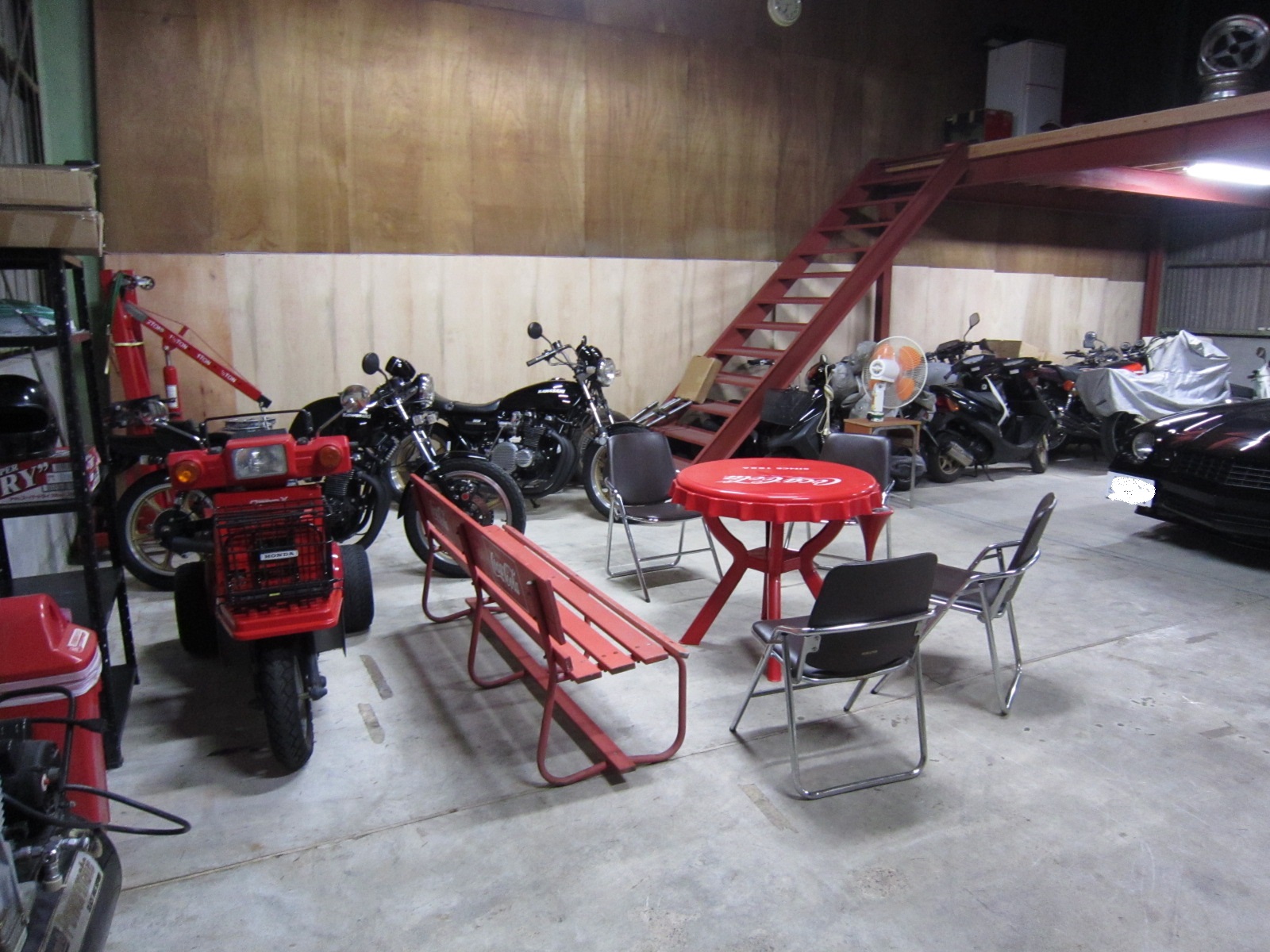 9月28日(土)今晩、ここのガレージで西日本Zミーティングの打ち合わせをするため、午前中に会場設営しておきます。