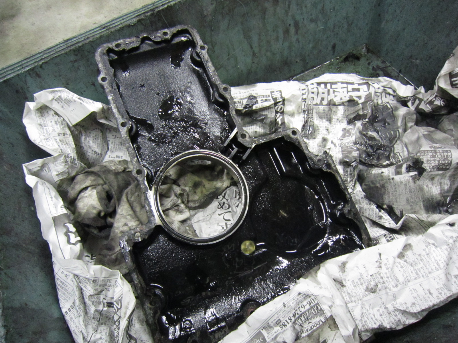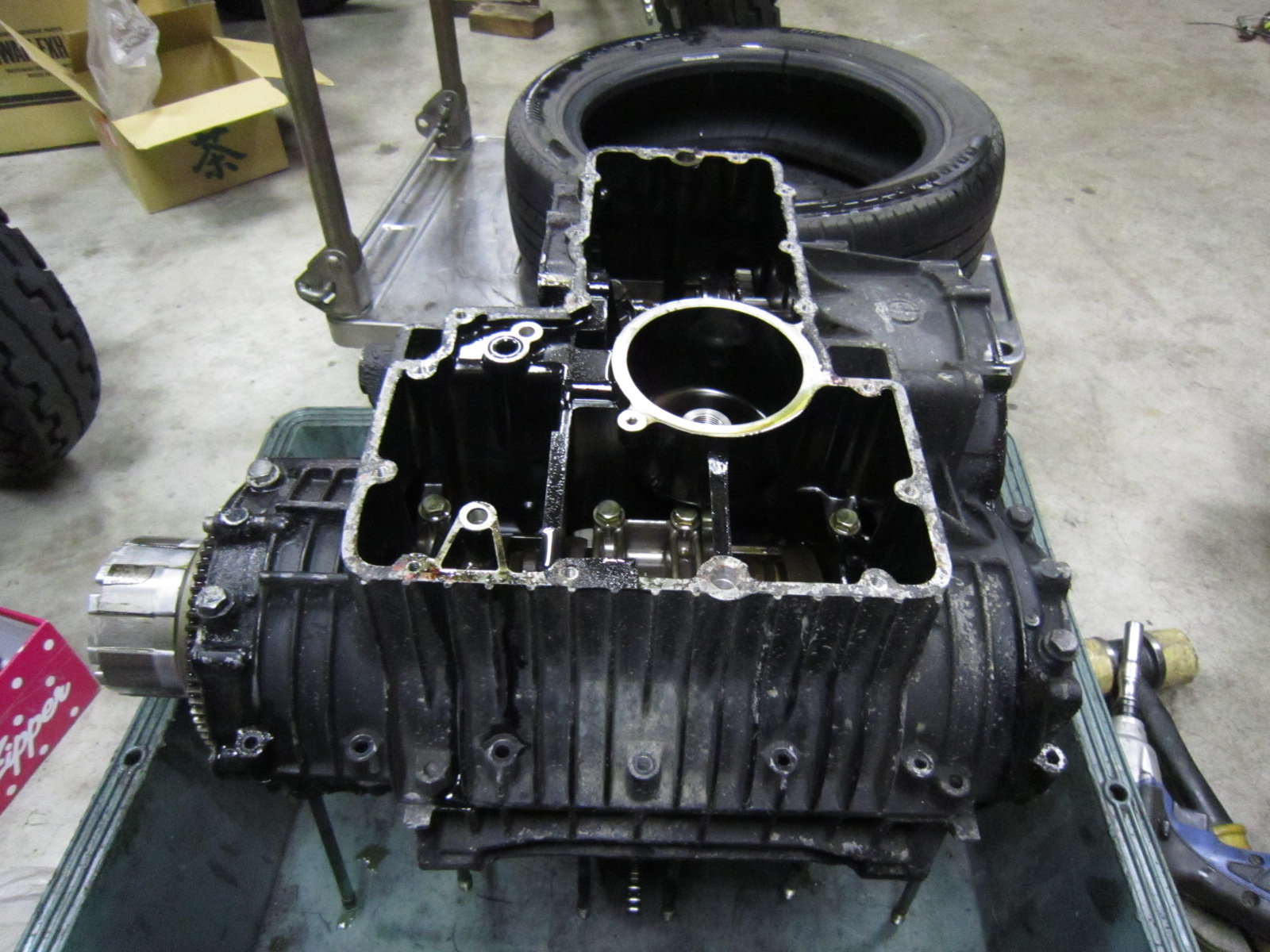 エンジンオイルも抜き取ったので再び下しエンジン分解していきます。