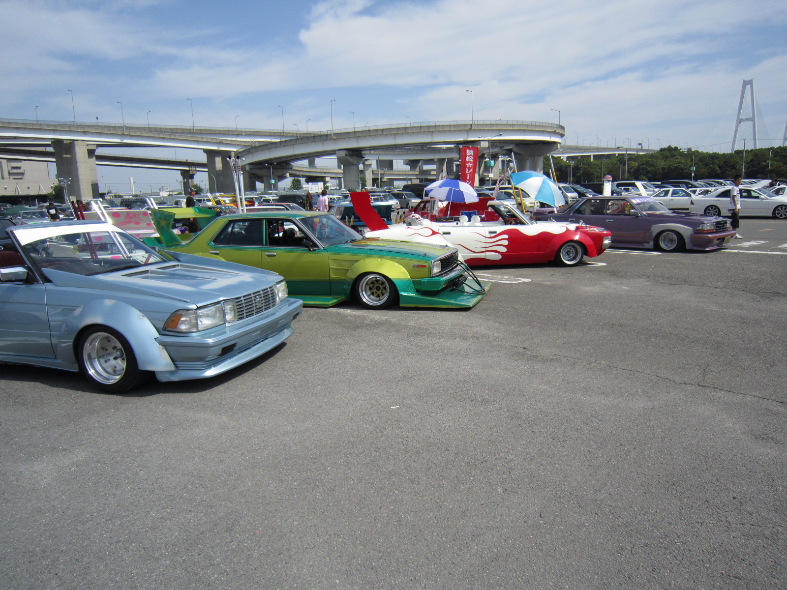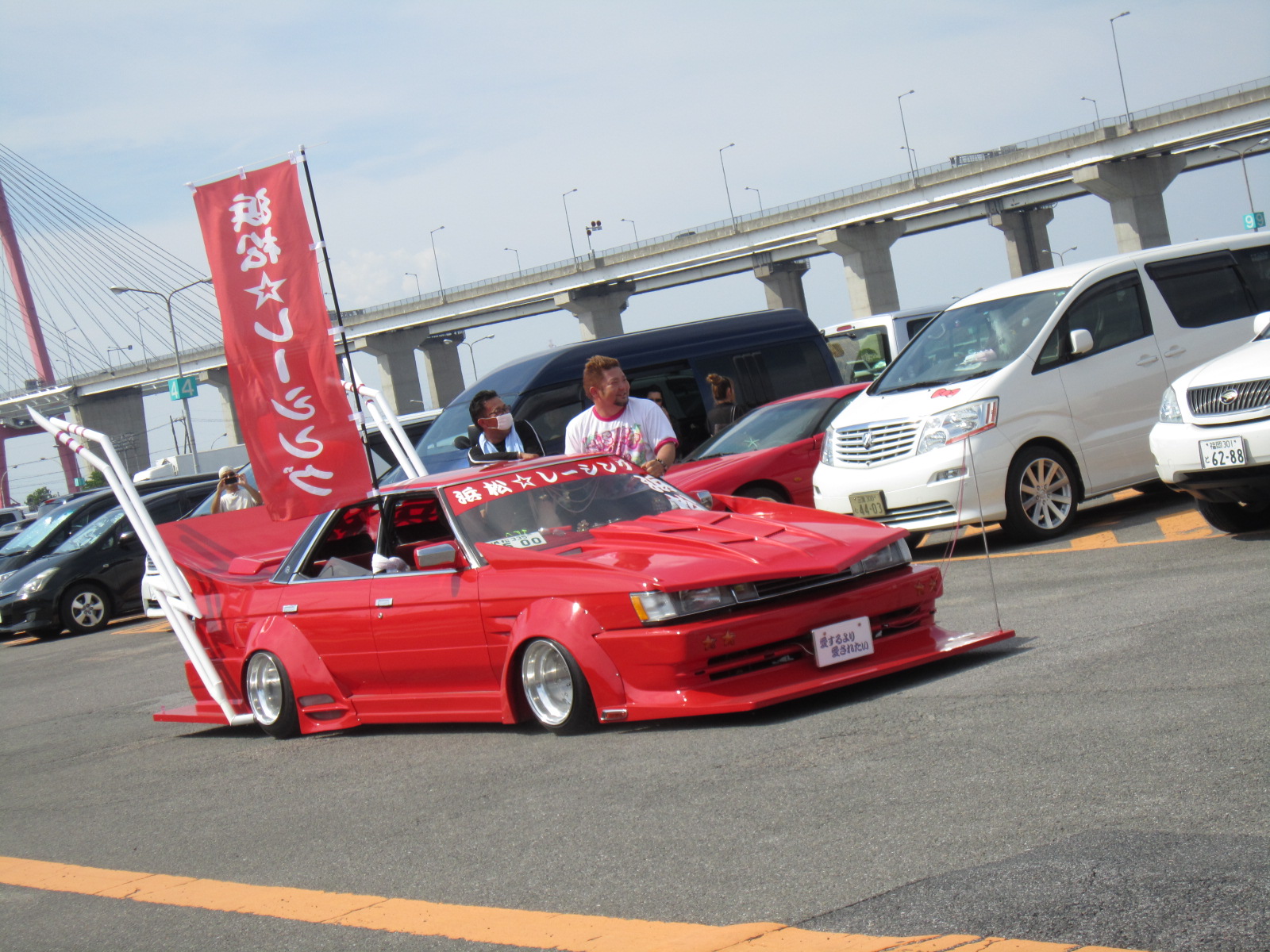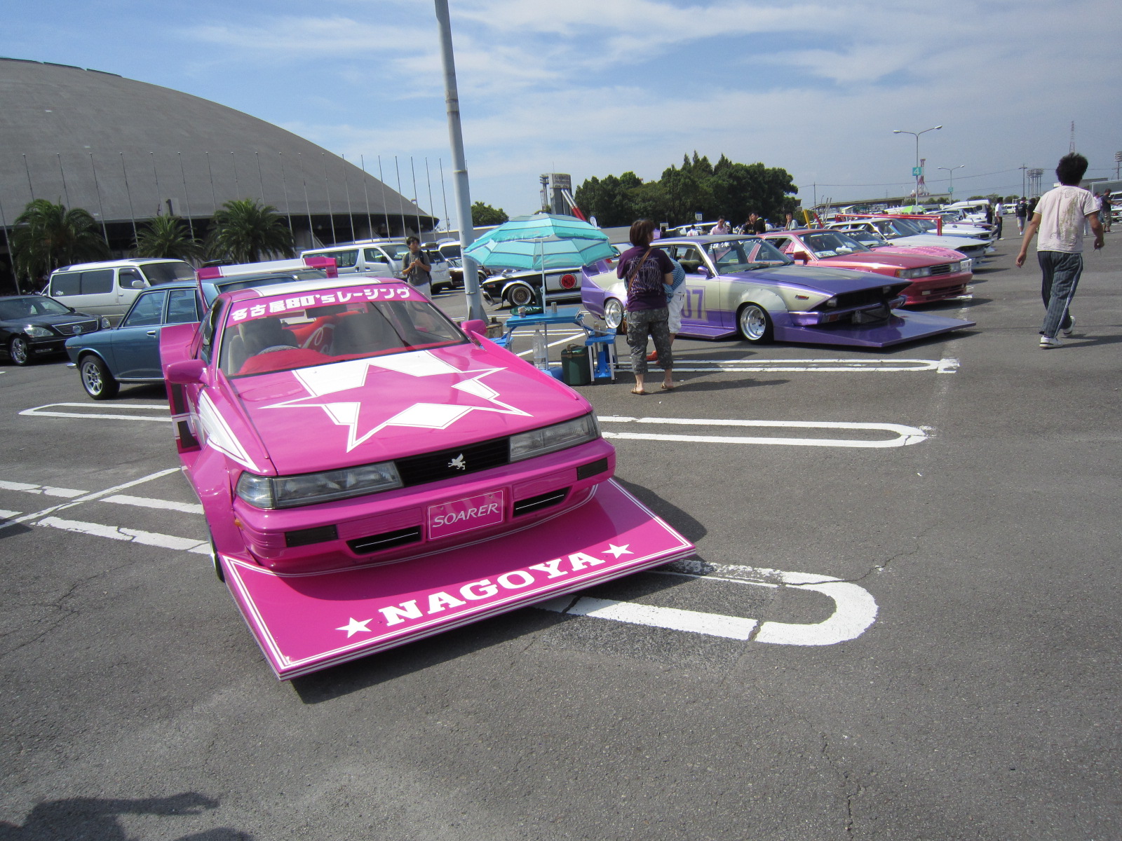 会場駐車場には、ド派手ないかす車でいっぱいです。 何だかワクワクしてきましたよ!!