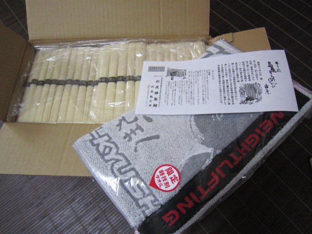 8月9日(金)なんと、S本さんから素麺いただきました。 そして、息子へタオルも!!