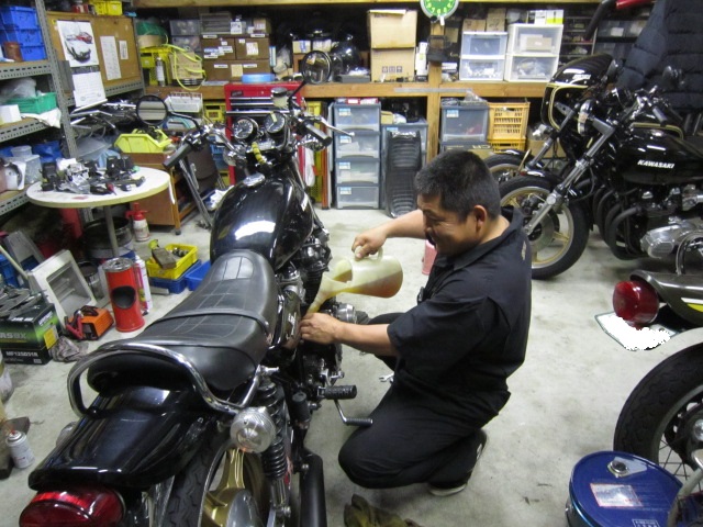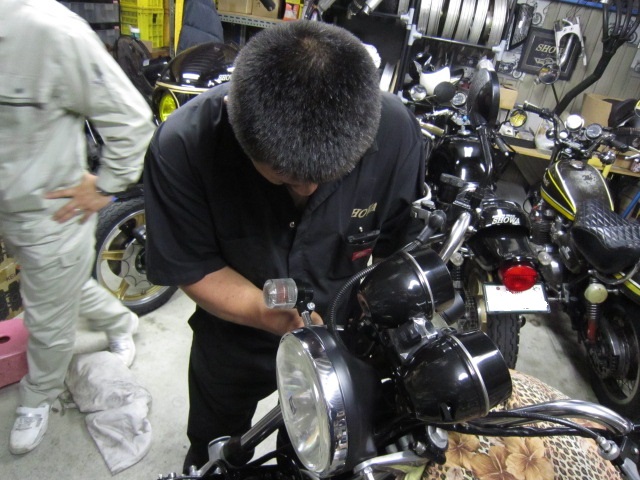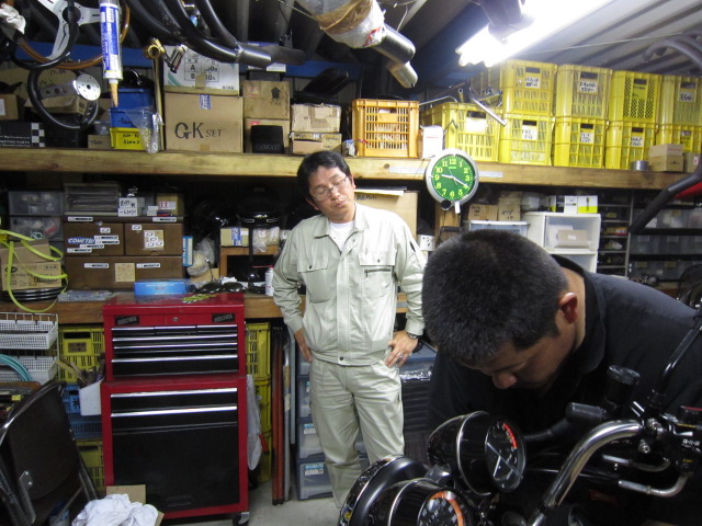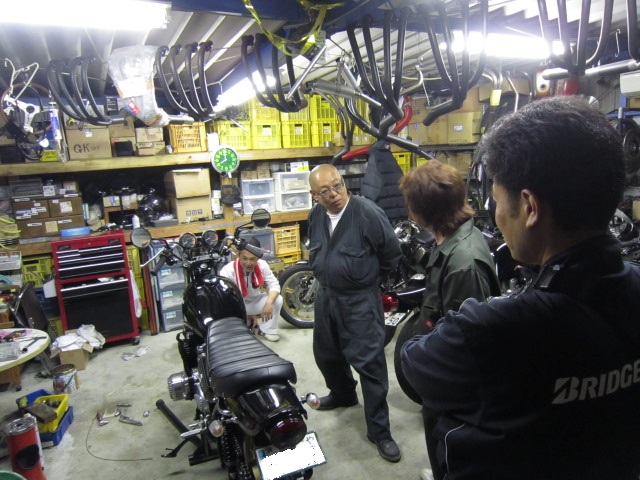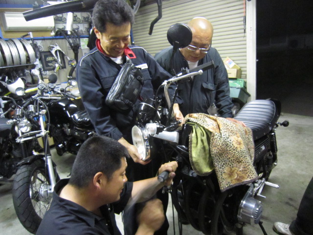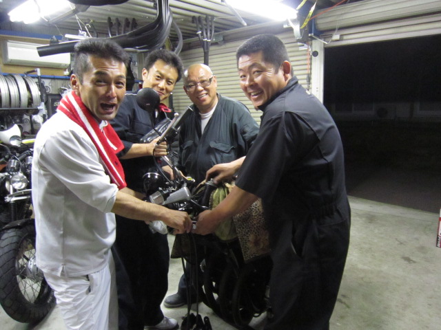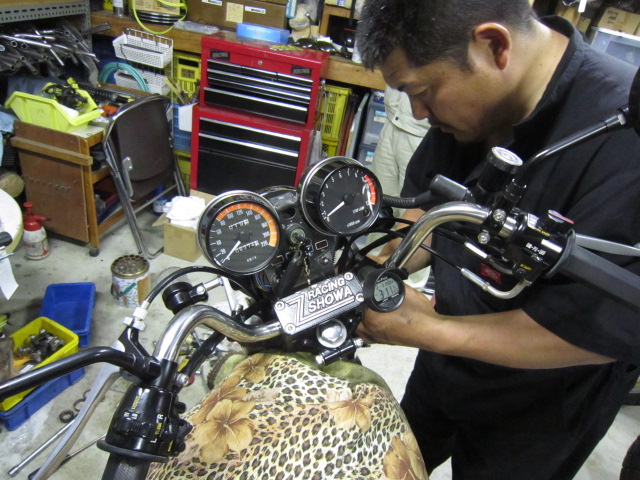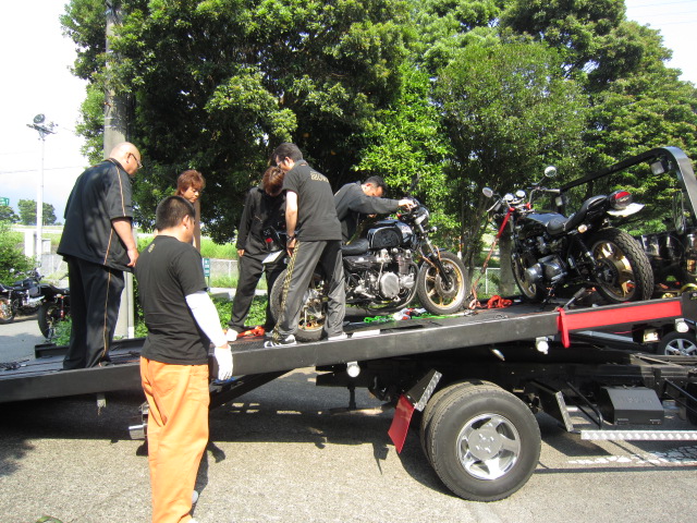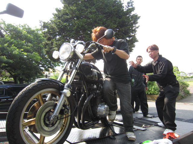 そのため各自車両を持ち込み積載車に積み込む準備をしていると、ウルフのZ2のステアリングが不自然な動きをする・・・・このまま乗らすわけにはいかないので、メンバー総出でチャックしてみます。