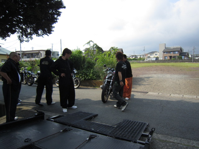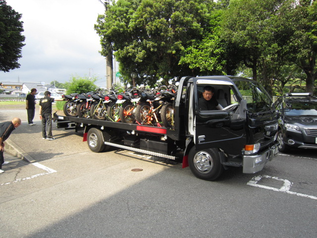明日の朝ここから走っていく予定にしているので、積車から単車を下しておきます。