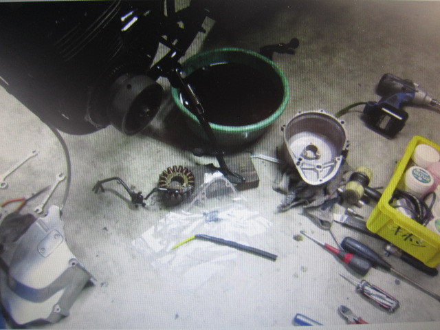 なんと一週間に一滴しか漏れないダイナモカバーのオイル漏れ修理や、リアブレーキのマスター軸のシミ???OH・・・。