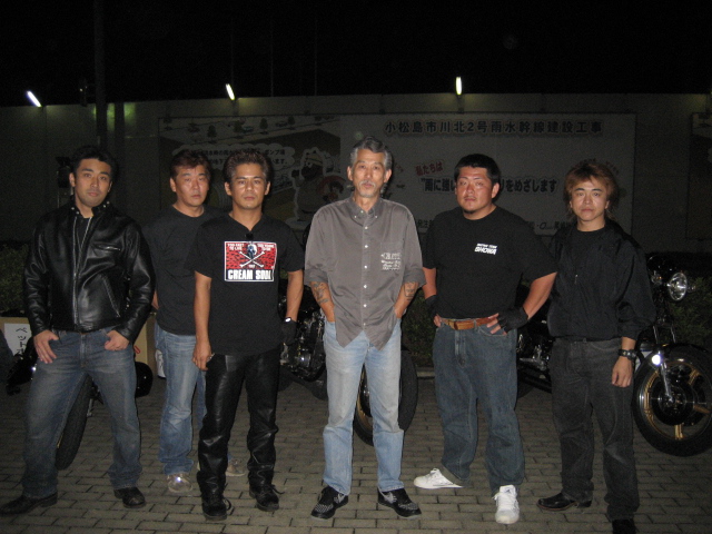 9月18日(月祝) 徳島県の小松島という町に、なんとCOOLSがやって来た。 当日SHOWAメンバーの一部は、ライブに参加したが、私を含む一部のメンバーは、遅れながらも単車で駆け付けた! 会場の入り口前には、ヒデミツさんの製作車両が並べてあった。 周りは皆、ハーレーばっかりで、Z軍団は自分達だけでした。 そこへ、会場の外へヒデミツさんが出て来てくれていたので、写真をお願いすると、気持ちよく引受けてくれました。 私が感じた印象は、思ったより背が高かったことです。 カッコよかった!! アー言う風に、年を取りたいなー!