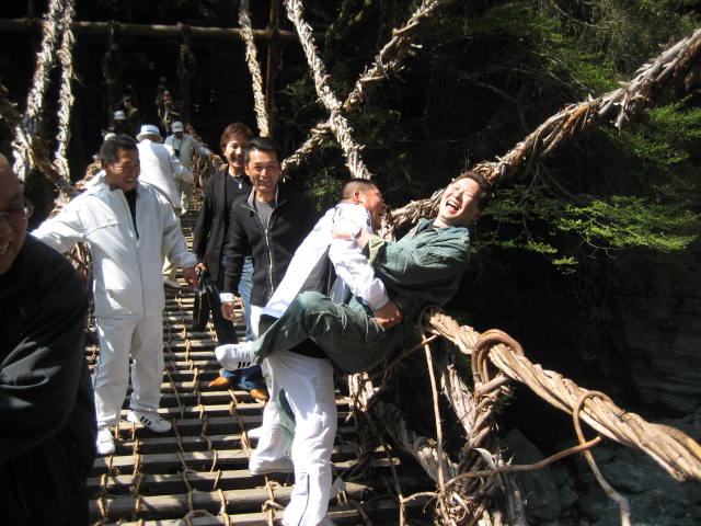 ようやく到着・・・駐車場よりかずら橋までの移動は歩きだが・・・なんだか雰囲気の悪い人たちだね・・・・。(怖)