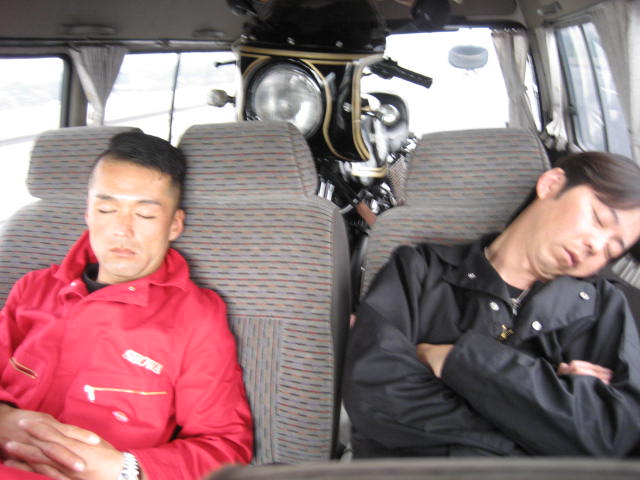 車に乗った瞬間、お疲れモードに入っています・・・・。(副長川端・KONIさん)