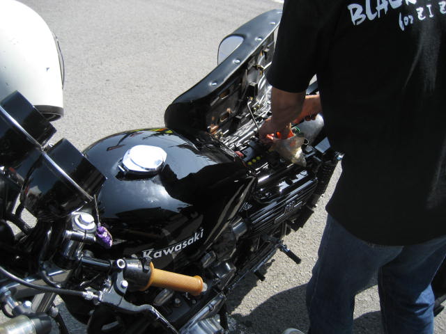 自分でタンクキャップを付けたのはいいが、ピンが抜けかけキャップが開かない・・・。 ピンをかしめてなかったらしい。 お馬鹿だ!!