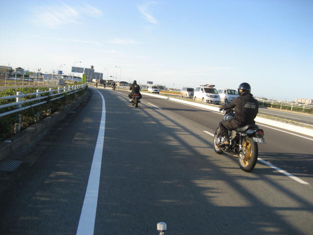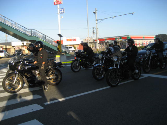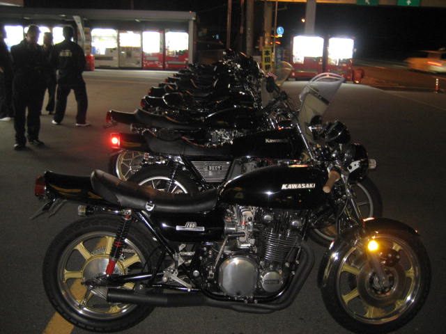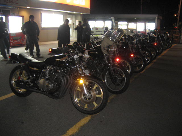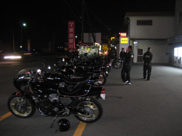 日も暮れてしまい、徳島道入り口付近にあるSHOWAの集合場所へ移動し、お別れの儀式へ・・・・・気が付けば黒ばっかり! なかなか異様な・・イイ感じじゃない!