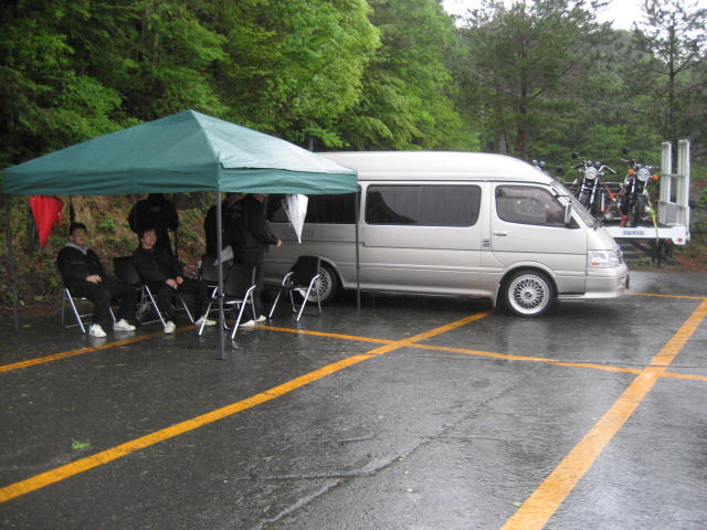 この雨の中、この日を待ちに待ってた人たちは、単車で上がって来ている!!