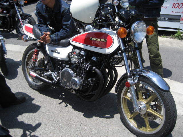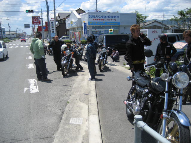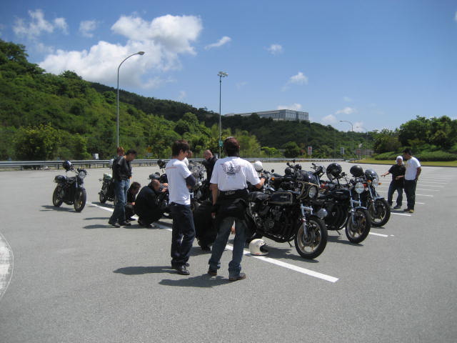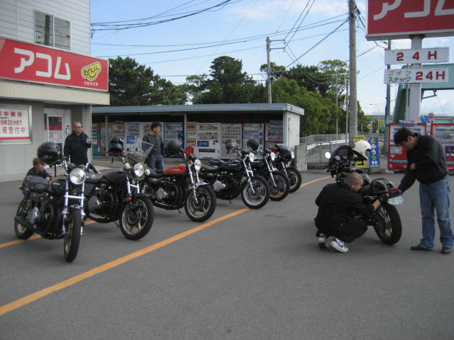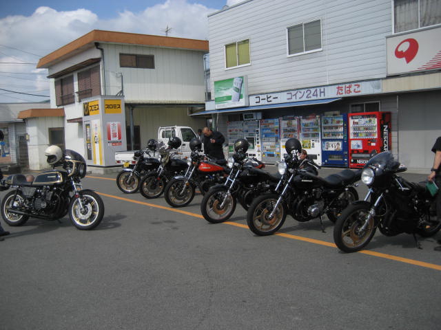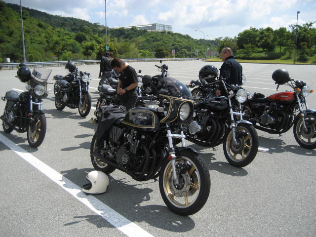 時間も過ぎていき、もうこれぐらいかなーと思っているところに、数台のZがやって来てくれた。 なんと、ナンバーを見てみると、高知ナンバーではないか!話をしてみると、高知県でバイクショップをしておられる、ブルースカ○の大○さんが仲間を引き連れ、参加してくれました。