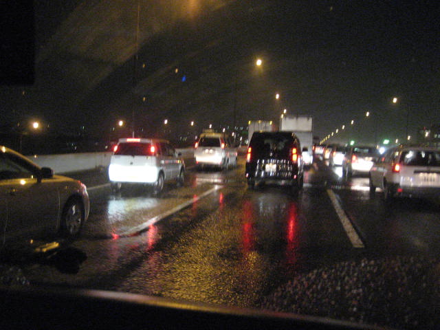 高速を降りて、東京の街へ向かうが、渋滞でなかなか動かない。