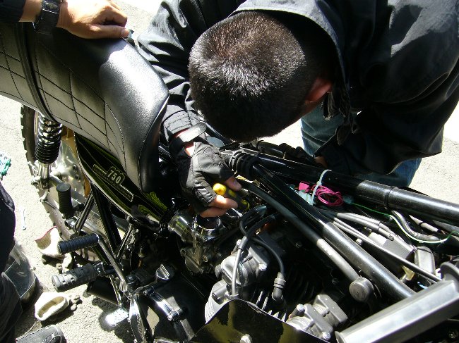 帰り道に、何やら道端でタンクを外している車両を発見。