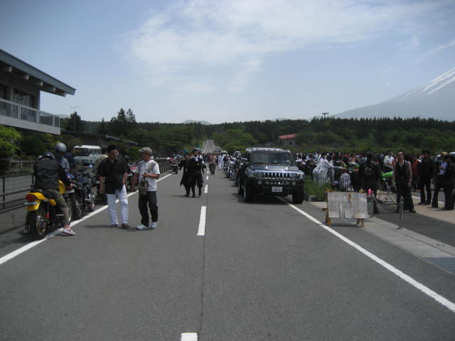 会場入りが出来ない車両は、道路上へ仕方なく止めることになった。