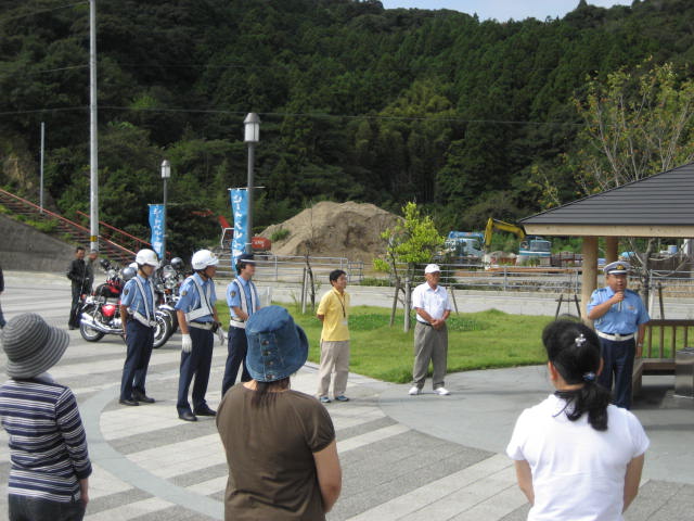 なんと今日、この場所で、交通安全の会をする予定になっており、警察もたくさんいた。