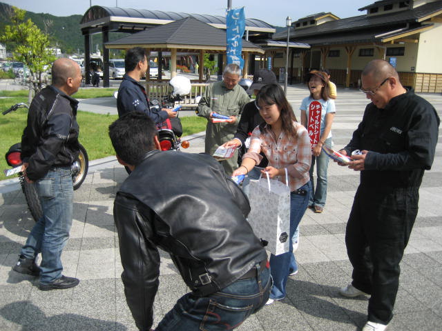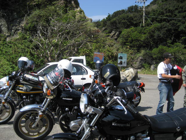 すると、駐車場でもない所に停車した私たちの単車の横でいきなり開会された。