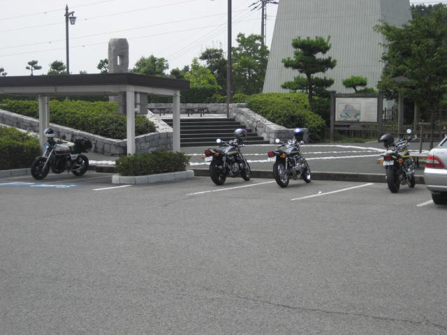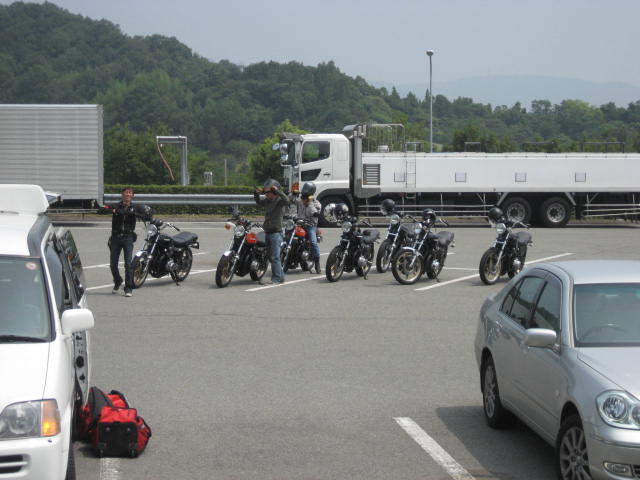 外の日陰のベンチに腰掛、休憩していると、井戸端会議に参加されると思われる車両の音がしてき、SAに入ってきた。