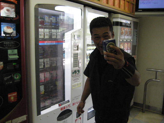 「暑いなー!まぁ、コーヒーでも飲もーだ! ウォー!!熱いコーヒー買ってもーた!! (SA全体に聞こえるような声だった。)・・・・・腹の調子悪かったら、ホットはいかが?」