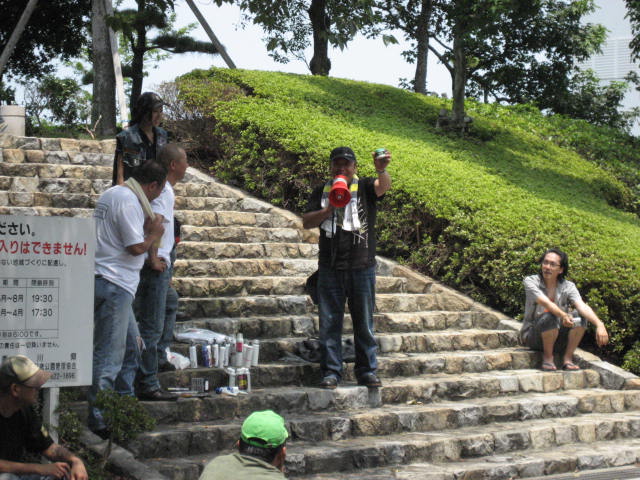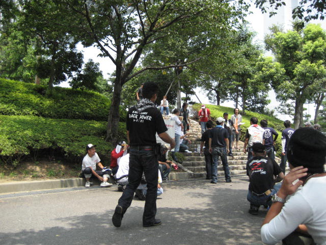 会場の暑さが増して、影へ移る人がたくさん出てきた。