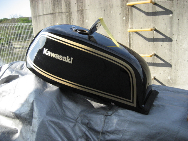 9月26日(火) 10月15日大阪で行われるBGミーティングにエントリーする予定にしている私の車両(船場仕様)を、職場へもって行き、掃除をしようとした時に発覚! 何やら、タンクの塗装が浮いている様な所を発見。 恐る恐る触ると、な・な・んと極小の燃料漏れの為塗装が剥げていた。 (一時金縛り状態の意識不明に陥った。) 慌てて燃料を抜き、材料屋さんで、補修パーツ等を購入してきて修理に掛かった。