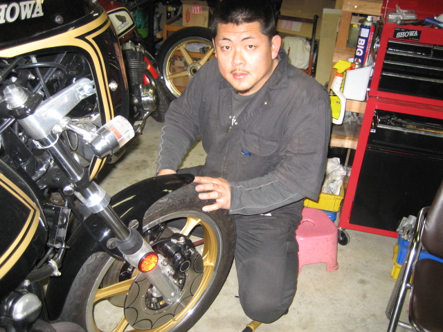 一年程前に徳島の某ショップより200万円で購入したZⅡ(Z750RS)だが、何か気に入らないようだ。 エンジン音も大きい音がしている。 その修理と、イメージチェンジを相談に来た。(200万円も出して買っているのに、話を聞いて、何だか、気の毒だった。)