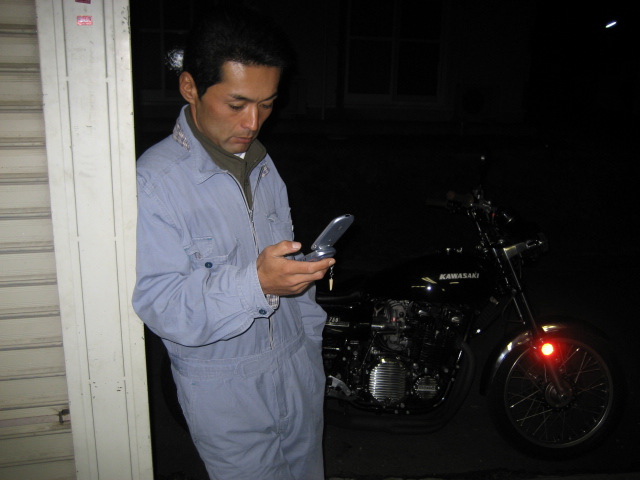 KONIを取りに来た。 明日のショートツーリングに付けて行くそうだ。 商品に、満足そうであった。 が、メールばっかりしてる。